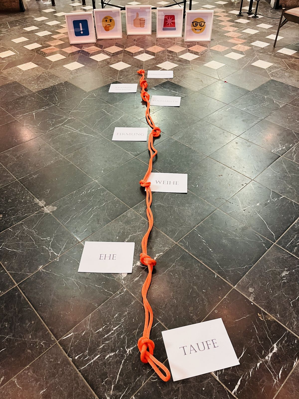 Bei der Firmung zum Beispiel gab es ein Labyrinth, in dem es mehrere Aufgaben gab, die deinen Schritt zur Firmung begleiten. Dann gab es auch noch Hanteln, bei denen du überlegen solltest, was dich stark macht. Dazu passend konnte jeder, der wollte, einen Traubenzucker zur Stärkung nehmen.